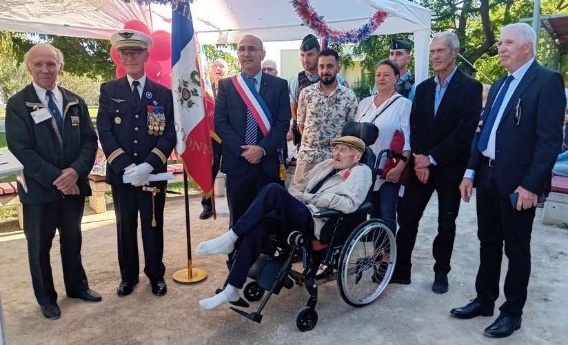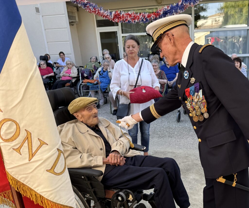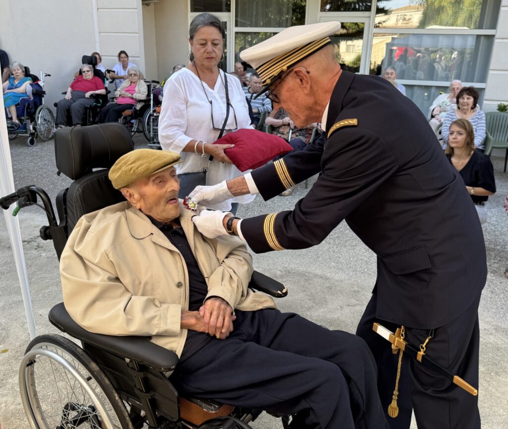 Ce dernier 18 septembre 2025, ce centenaire résidant de « l’Ehpad des Lavandes » de Florensac (Hérault) depuis 2020, a été fait Chevalier de l’Ordre National de la Légion d’Honneur, décret du 25 mars 2024, après un courrier reçu du Ministre Mr Lecornu, à l’occasion du 80ème anniversaire de la libération.