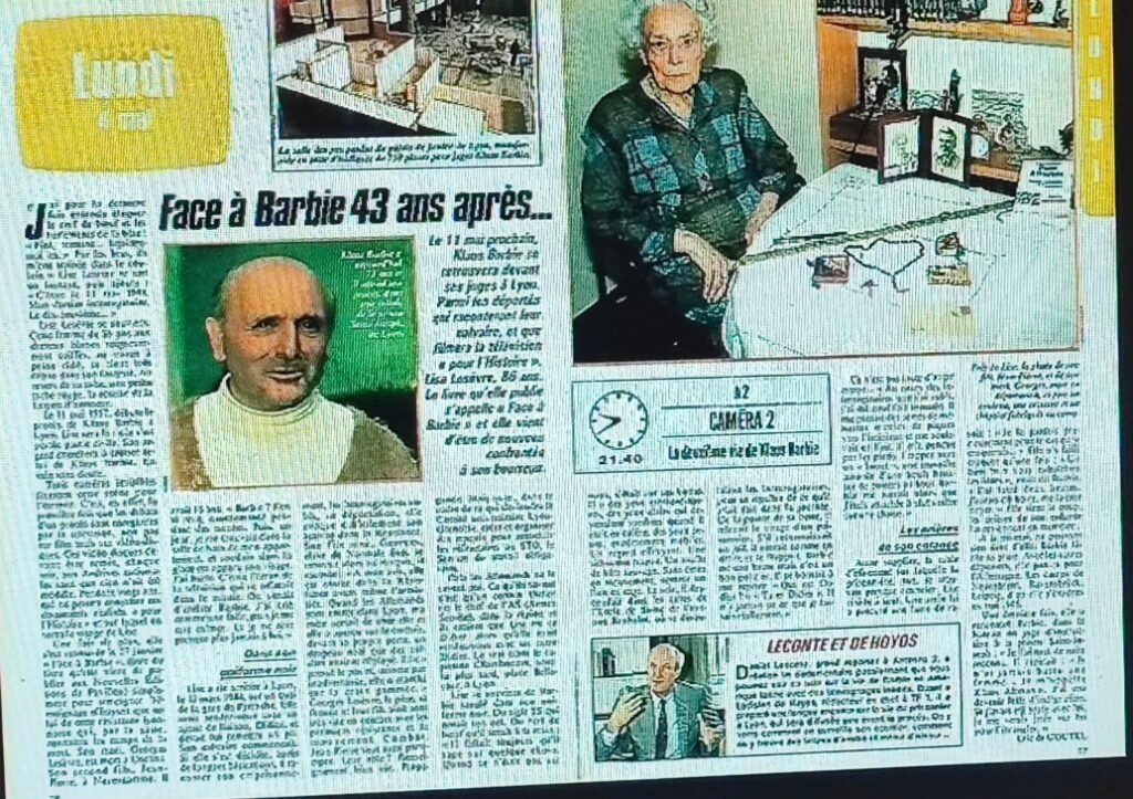 Elle témoignera lors du procès du « boucher de Lyon » Klauss Barbie ce sera un nouveau face à face mais les rôles cette fois sont inversés et la justice tranchera.(du 11 mai 1987 au 3 juillet).