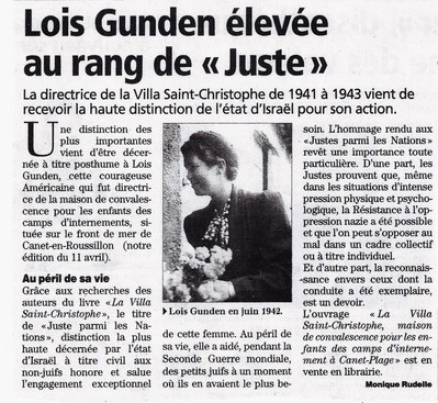 1°) Loïs Gunden (1915/2005) sera reconnue « Juste parmi les Nations » le 27 février 2013 à titre posthume. Elle a été arrêtée en janvier 1943 par les Allemands. Libérée en 1944, échange de prisonniers. Reprend son activité d’enseignante de français à Goshen.